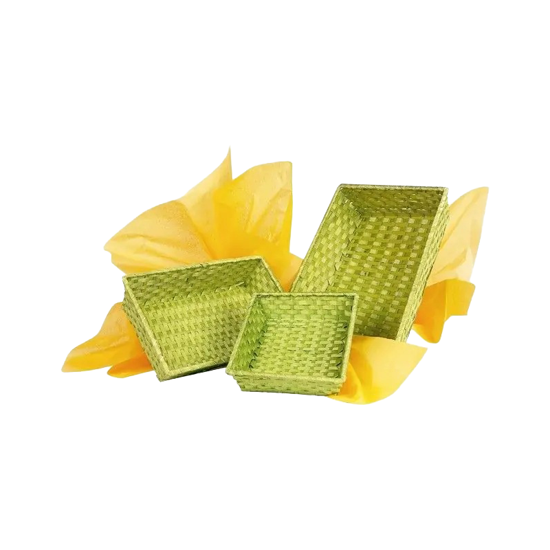 Cette corbeille en bambou vert anis ne manquera pas de donner à vos créations de paniers gourmands un côté branché.