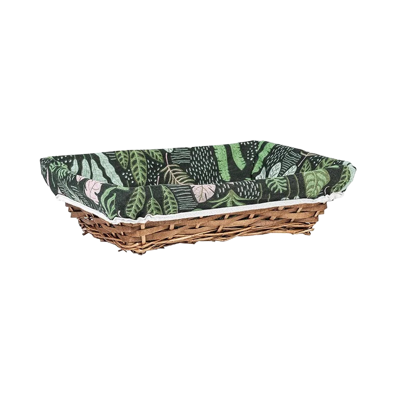 Cette magnifique corbeille en osier avec un tissu vert motif végétal sera un joli contenant pour vos créations de paniers gourmands ou simplement en décoration de votre intérieur.